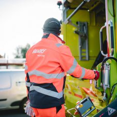Henry & Delacuisine Service Voirie SA est certifiée ISO 45001 pour la santé et la sécurité au travail. Tous nos collaborateurs actifs sur le terrain sont équipés aux normes de sécurité EN 20471, les plus sévères en la matière, avec chaussures type S3, gants, lunettes de protection.